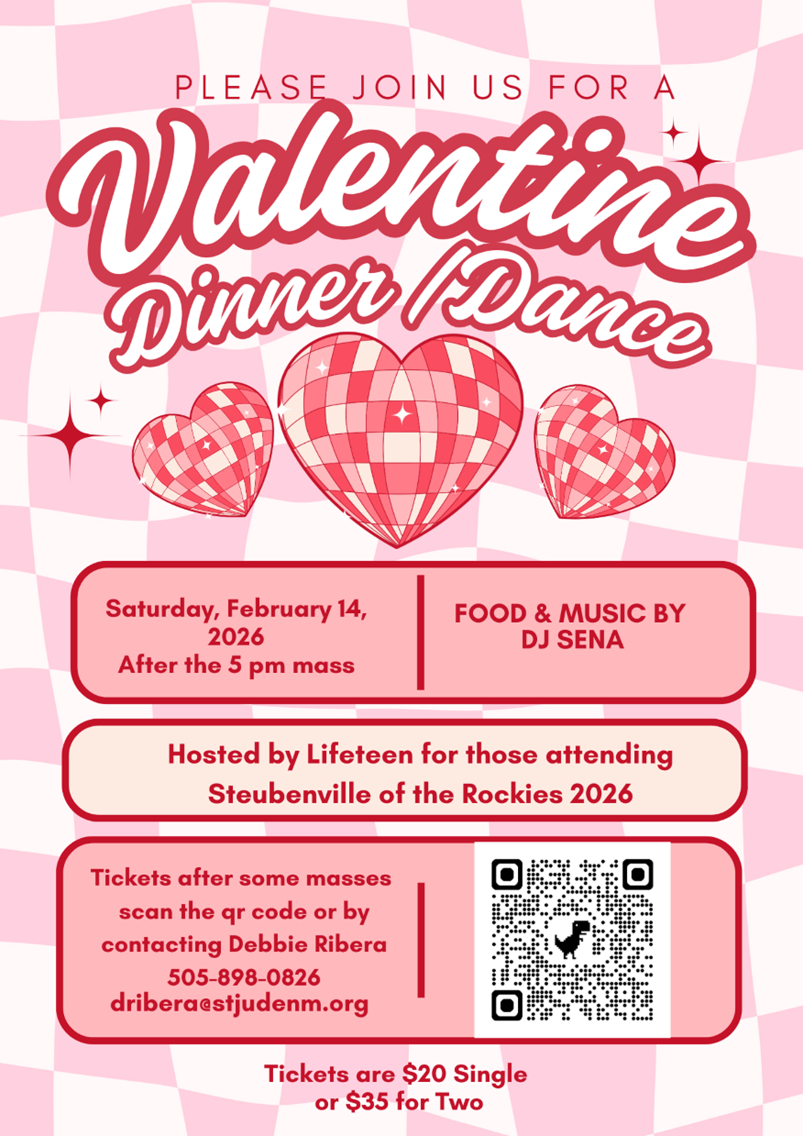 Tickets sold by scanning the QR code or contacting Debbie Riberat at 505-898-0826 or dribera@stjudenm.org