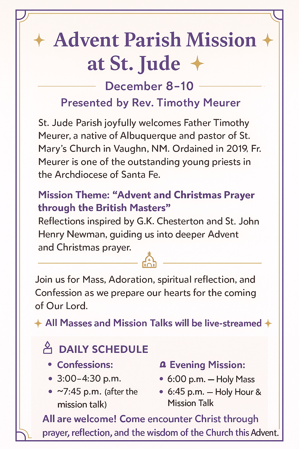Advent Mission: December 8-10