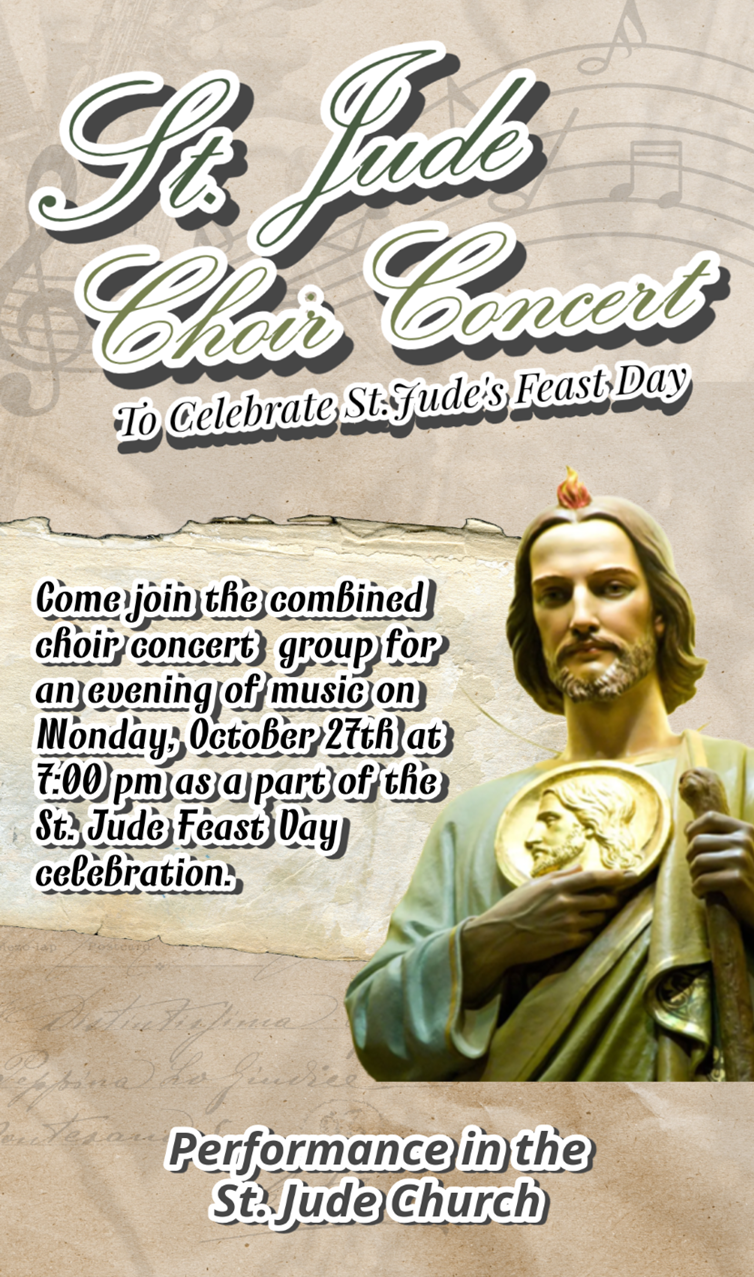 - 10/27 - Monday after 6pm Mass – Concert by St. Jude choirs