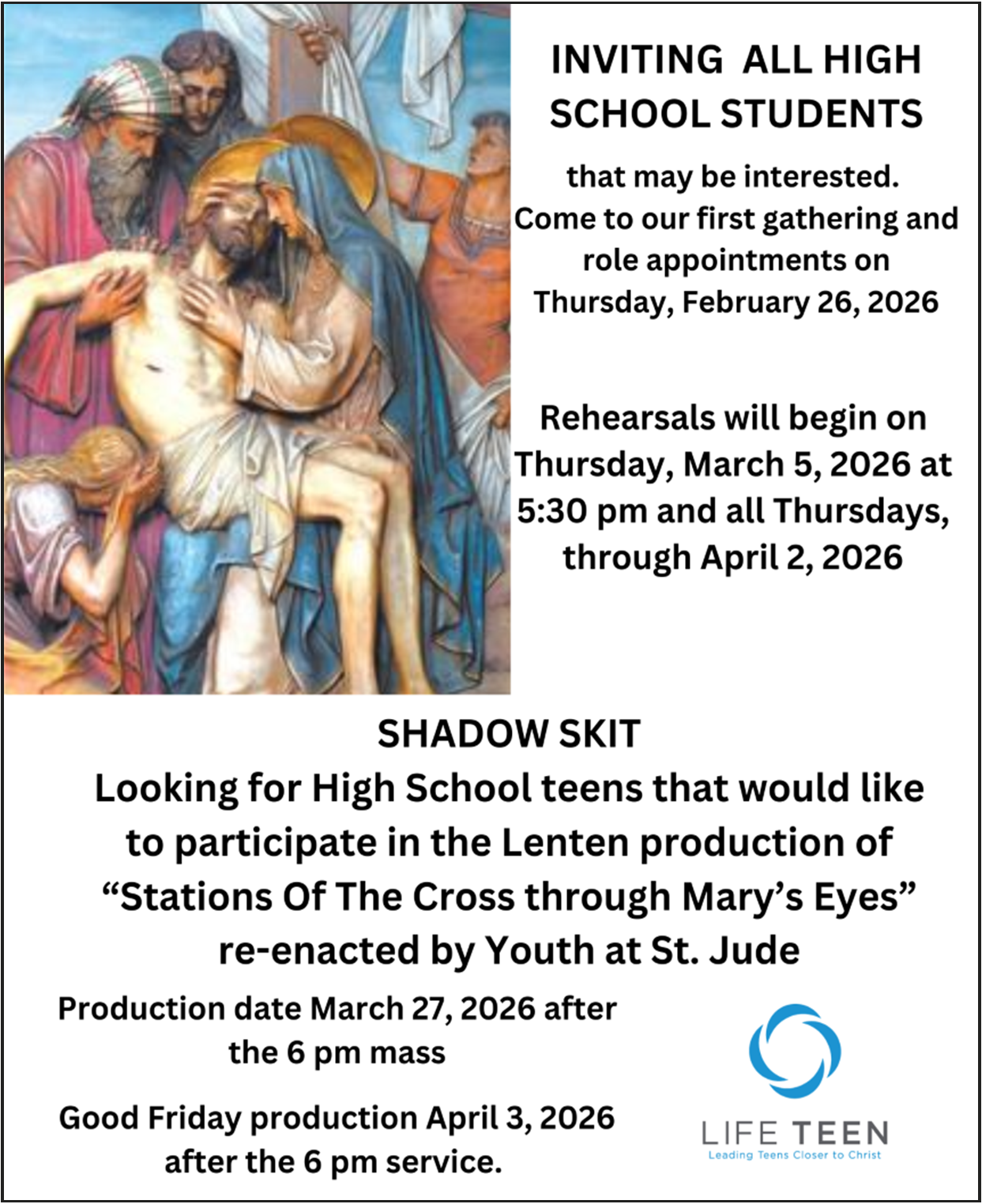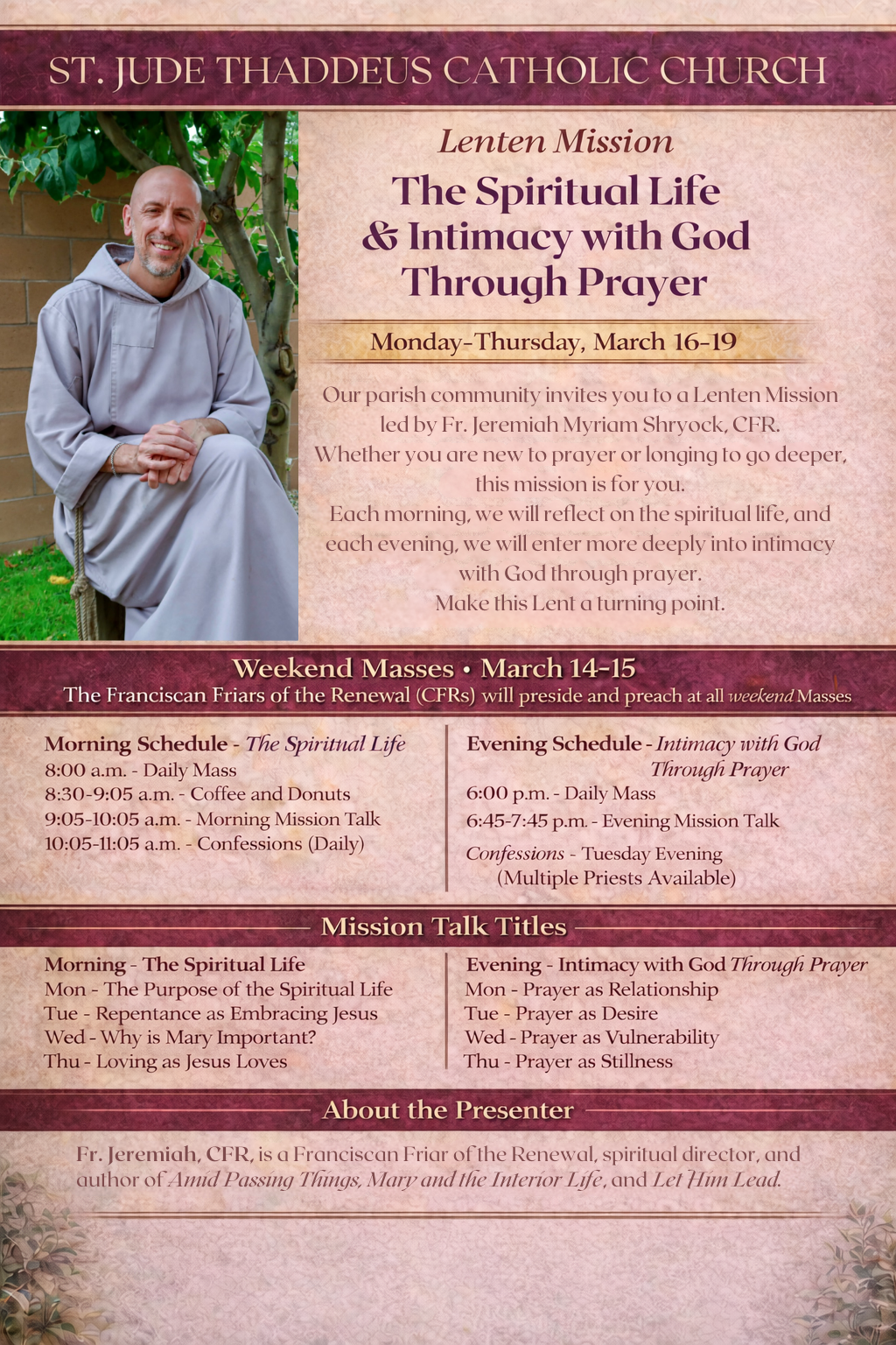 - St. Jude’s Lending Library: In the back of the church two shelves display books for check-out. Simply write the title of the book you take on the clipboard and return it in two weeks. If you have books in good condition you’d like to donate, please bring them to the parish office.