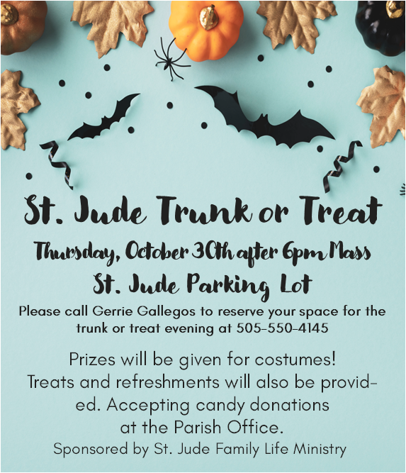 - 10/25 - Saturday after 5pm Mass – Rosary & Prayer Service by Los Hermanos Penitentes